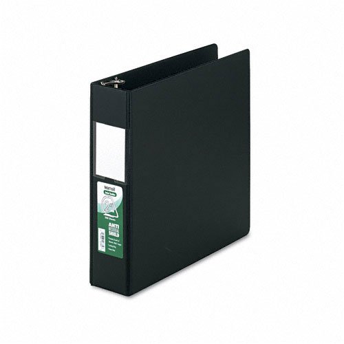 AgION® antimicrobial additive prevents the growth of bacteria, mold and fungus. Documents stay secure with locking round rings. Rings mounted on the back lid allow pages to lie flat and reduce wear. Two clear inside pockets provide extra storage for loose documents. Built to last-heavy-duty construction. Holds 25% more than standard round rings. Global Product Type: Binders-Ring Binder; Maximum Capacity Range ("): 2 in; Color(s): Black; Binder Sheet Size: 11 x 8 1/2.